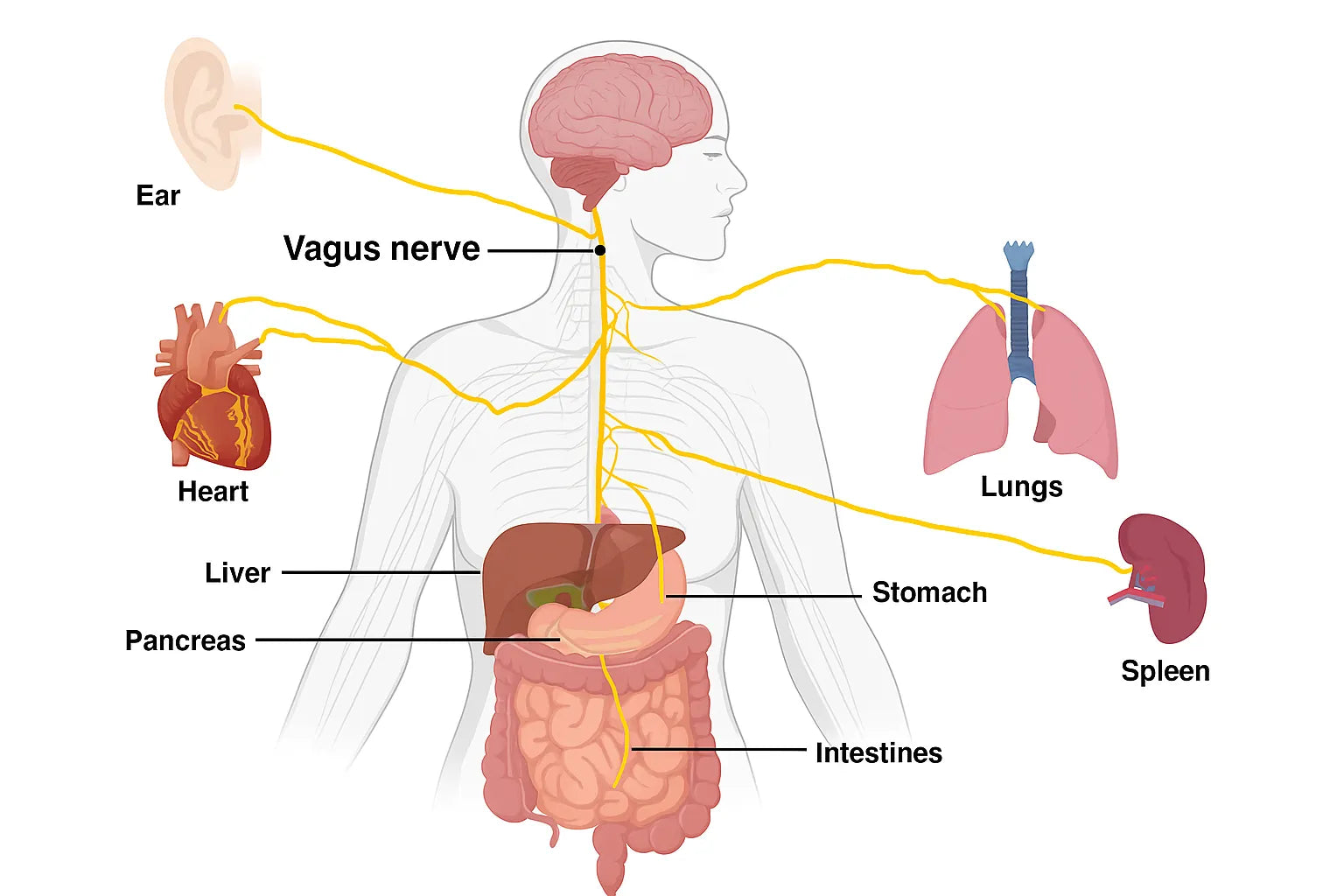 In essence, the vagus nerve acts as a biological communication bridge linking the brain with key organs to support relaxation, recovery, and internal harmony.